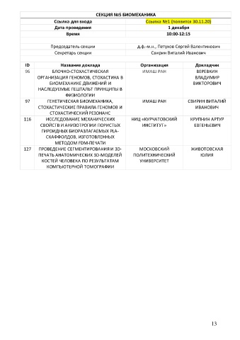 СЕКЦИЯ №5 БИОМЕХАНИКА