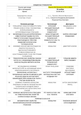 СЕКЦИЯ №3 ТРИБОЛОГИЯ